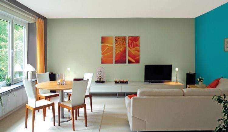 Cores Vibrantes: Se a ideia é adicionar personalidade e energia ao ambiente, cores vibrantes como amarelo, azul ou verde podem ser usadas como destaque em paredes específicas. Essas tonalidades são ideais para áreas sociais, como salas de jantar ou espaços de convivência, trazendo vida e dinamismo ao espaço.